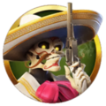 Дизайн слота – это деревянная сцена с выступающей на ней группой марьячи. Над сценой находится барабан револьвера, в его соплах отображаются множители. Барабан вращается, множители увеличиваются.